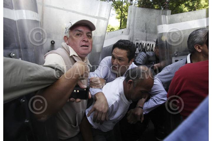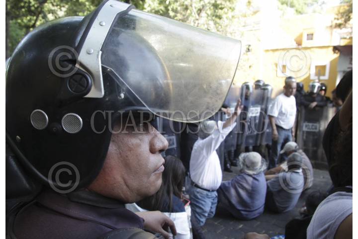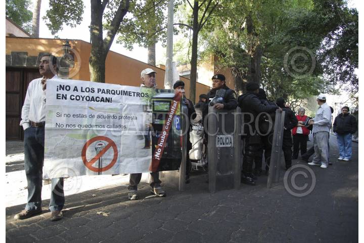 MÉXICO D.F., 01MARZO2014.- Granaderos desalojaron a vecinos que trataban de impedir la colocación de las bases metálicas de los nuevos parquímetros de la empresa ecoParq, en la colonia Santa Catarina, de la delegación Coyoacán. FOTO: MICHEL TRAVERSE /CUARTOSCURO.COM