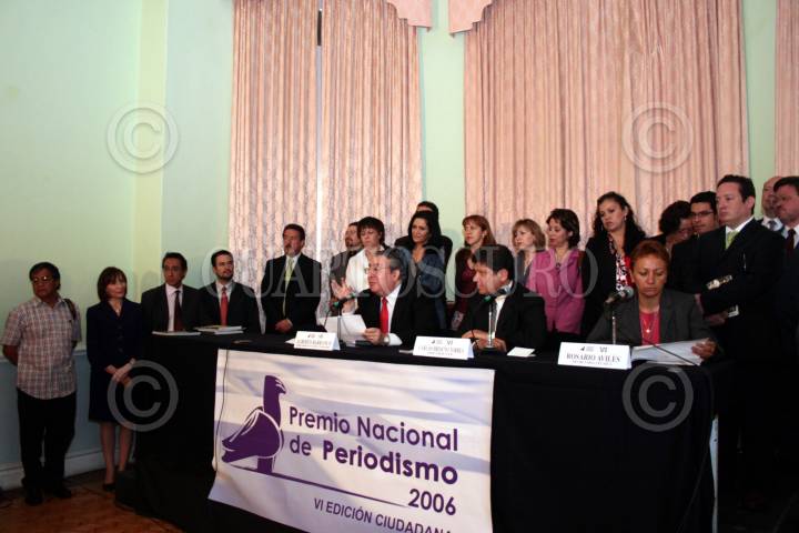 MÈXICO,D.F.25ABRIL2006.- En conferencia de prensa, el Consejo Ciudadano del Premio Nacional de Periodismo AC integrado por Rossana Fuentes Secretaria Tècnica del CCPNP , Sergio Aguayo Presidente del Jurado, Josè Trinidad Padilla Presidente del CCPNP y Josè Manuel Jurado Director de Comunicaciòn Social de la Universidad de Guadalajara dieron a conocer los ganadores en las categorìas de: Noticia, Reportaje/Periodismo de Investigaciòn, Crònica, Entrevista, Fotografìa, Artìculo de Fondo/Opiniòn, Caricatura/Humor, Orientaciòn a la Sociedad, Mesa de Anàlisis/Debate y Premio a la Trayectoria Periodìstica. Foto: M. Tulia Pèrez Bocanegra/CUARTOSCURO.COM