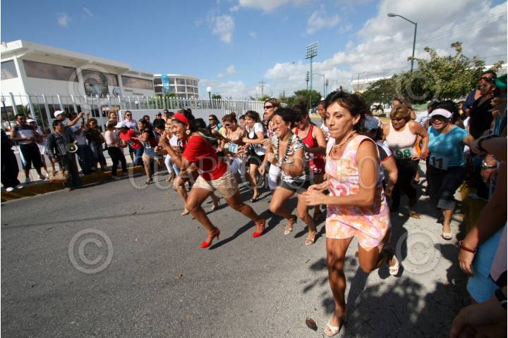CANCÚN, QUINTANA ROO 21 MARZO2009.- Participantes de la primer carrera en tacones que se realizó en este polo turistico, la competencia se dividió en 3 categorias siendo la libre de un minimo de 7 cm para el tacon. FOTO: AMARANTA PRIETO/CUARTOSCURO.COM