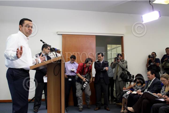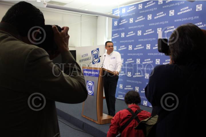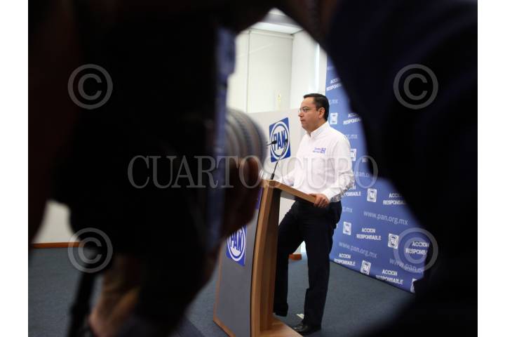 MÉXICO, D.F., 26MAYO2009.- Gemán Martínez Cazares, dirigente nacional del PAN, durante su conferencia de prensa en su sede general de avenida Coyoacán, el panista expreso sus condolencia a la familia y a el periódico La Opinión por el levantón y posterior ejecución de Eliseo Barrón, reportero que cubría la fuente policíaca de este diario, el día de ayer. FOTO: MOISÉS PABLO/CUARTOSCURO.COM