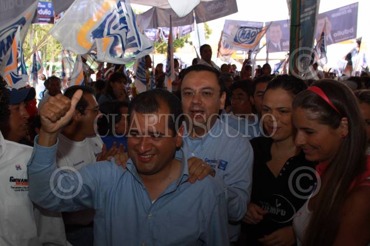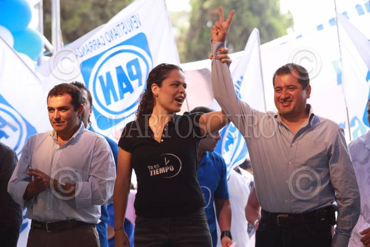 MÉXICO D.F., 28JUNIO2009.- Obdulio Avila acompañado por Germán Martínez Cázares presidente nacional del Partido Acción Nacional, y Mariana Gomez del Campo dirigente del PAN del DF a su llegada a la explanada de la alameda del sur en donde el candidato para jefe delegacional de Coyoacan Obdulio Avila cerro su campaña FOTO: SÁSHENKA GUTIÉRREZ/CUARTOSCURO.COM