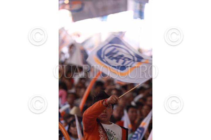 MÉXICO D.F., 28JUNIO2009.- Un niño apoya al candidato a jefe Delegacional Obdulio Avilaquié, cerro su campaña esta mañana el la alameda del sur FOTO: SÁSHENKA GUTIÉRREZ/CUARTOSCURO.COM