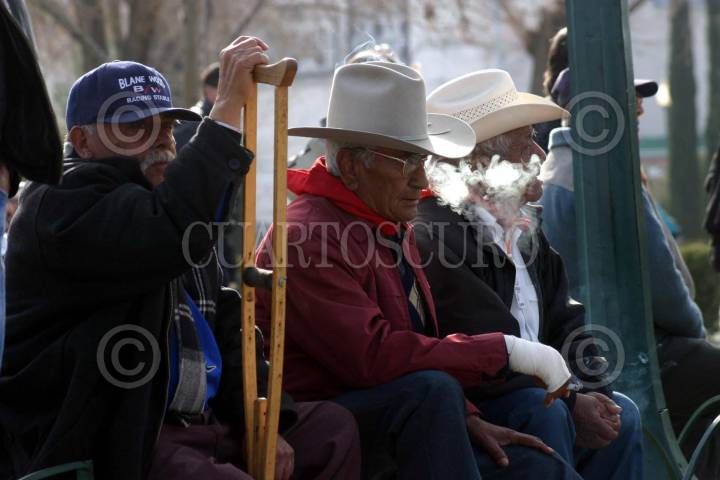CD. JUAREZ, CHIHUAHUA 09ENERO2005.- Soportando el frio de la mañana, se ve a un grupo de exbraceros durante la primera sesión informativa del año 2005, en la inmediaciones del monumento Benito Juárez. Reunion convocada por el Centro de Trabajadores Agrícolas Fronterizas, quien les informo que existe ya un fondo por 298.5 millones de pesos aprobado para indemnizar a los extrabajadores agrícolas por los fondos de pensión se les adeudan desde hace más de 40 años. FOTO: JGuadalupe Perez/CUARTOSCURO.COM