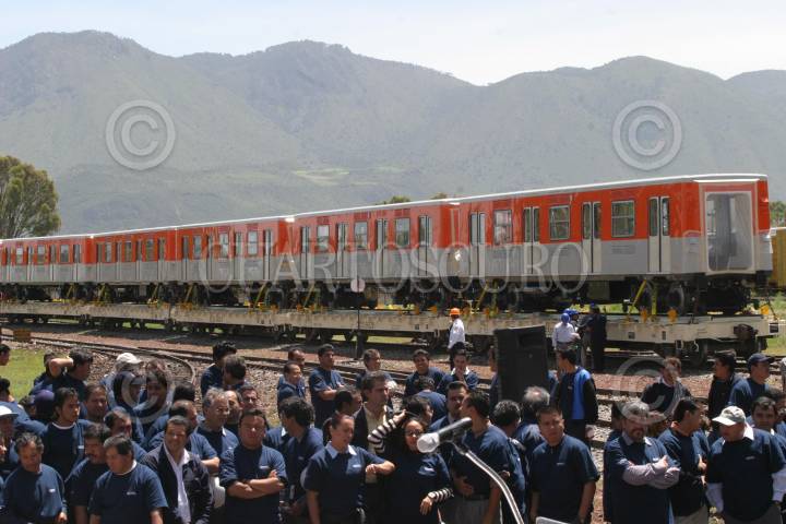Ciudad Sahagún, Hidalgo, 13 JULIO 2004.- El primer tren que entrará en funcionamiento y que será destinado a la línea 2 del metro, fue entregado por la planta Bombardier al jefe de gobierno. El proyecto que espera entregar 45 trenes concluirá a mediados del 2005. FOTO: Sandra Perdomo/CUARTOSCURO.COM
