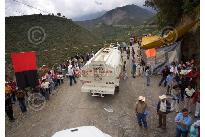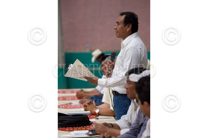 CADERYTA, QUERETARO, 29OCTUBRE2009.- Más de 400 comuneros y ejidatarios de la delegación de Maconí, en el alejado Municipio de Caderyta mantienen un bloqueo a la empresa ICA (Ingenieros Civiles Asociados), que construye la infraestructura llamada Acueducto II, que surtirá de agua a la capital del Estado, con un costo de original de dos mil 854 millones de pesos. La protesta comunera es por incumplimiento de los acuerdo firmados con la CEA (Comisión Estatal de Agua). A esto respondieron manifestandose, marcharon e hicieron una junta informativa ante los más de 400 representantes de las 18 comunidades. Donde acordaron una mega marcha a la capital del estado y continuarán los bloqueos, además de formar una Asociación Civil por la Defensa del Agua. Al evento los acompañó el Balfre Vargas, diputado federal por el PRD y secretario de la Mesa directiva del Congreso de la Unión, quién se comprometió a llevar al Congreso de la Unión el problema. FOTO: DEMIAN CHÁVEZ/CUARTOSCURO.COM