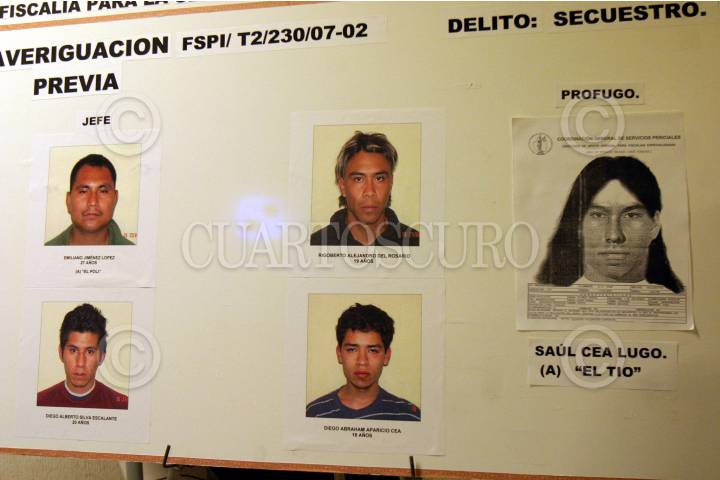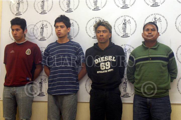 MEXICO, D.F. 18FEBRERO2007.- Agente de la policia judicial en Iztapalapa capturaron a Diego Alberto Silva Escalante, Diego Abraham Aparicio Cea, Rigonerto Alejandro Del Rosario y Emilio Jimenez Lopez, como responsables del secuestro de un menor de 15 años de edad, quien fue liberado con la detencion de los delincuentes cuando cobraraban el rescate, un integrante esta profugo. FOTO: PEDRO MARRUFO/CUARTOSCURO.COM