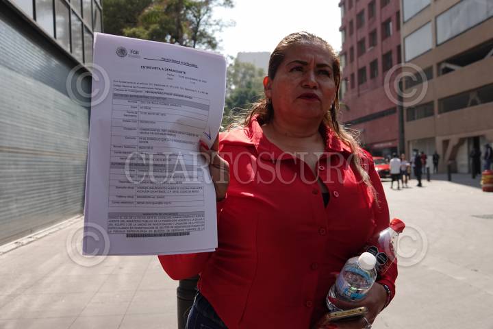Cecilia Flores, fundadora del colegio Madres Buscadoras de Sonora, acudió a la Fiscalía General de la República para interponer una denuncia por una amenaza inminente de muerte que ha recibido desde que inició la búsqueda de su hijo desaparecido Alejandro Guadalupe en 2015