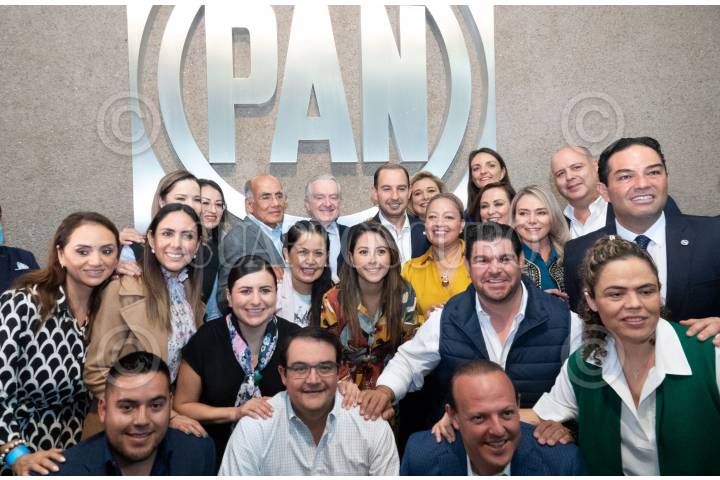 Jorge Romero, Cecilia Patrón, Marko Cortés, Enrique Vargas y Marú Campos durante la Reunión Plenaria de Diputados del PAN en el CEN del partido, alcaldía Coyoacán.