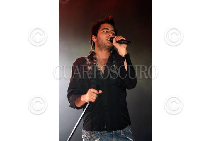VILLAHERMOSA, TABASCO, 30OCTUBRE2005.- Jesús; la voz principal del grupo musical y sensación del momento Reik, le pone sentimiento en su interpretación "Yo quisiera", lo que le ha valido la venta superiores a los 120 mil copias del album debut. FOTO: Marco Polo Guzmán/CUARTOSCURO.COM
