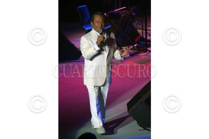 VILLAHERMOSA, TABASCO, 26OCTUBRE2005.- En el marco del III Festival Cultural CEIBA, se presentó en el teatro estatal Esperanza Iris, el maestro Armando Manzanero, quien a lo largo de cinco decadas de trayectoria varias melodias de su inspiración han sido interpretadas por Frank Sinatra, Elvis Presley, Luis Miguel, Angelica María, Raphael y Johnny Mathis, entre otros. FOTO: Marco Polo Guzmán/CUARTOSCURO.COM