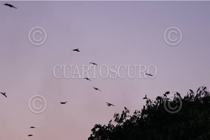 Decenas de aves se congregan en la copa de una ceiba en el municipio de Yautepec, imagen tomada la tarde del viernes.