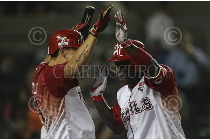 CIUDAD OBREGÓN, SONORA, 27NOVIEMBRE2016.- Homerun de Yuniesky Betancourt de águilas de Mexicali, durante el juego de estrellas de la Liga Mexicana del Pacifico (LMP) en el nuevo estadio de Yaquis. FOTO: LUIS GUTIÉRREZ /NORTEPHOTO.COM/CUARTOSCURO.COM