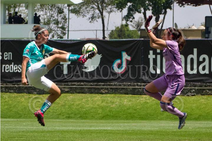 Itzayana Gonález y Brenda Woch, durante disputa por balón tras un saque de esquina.
