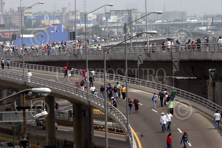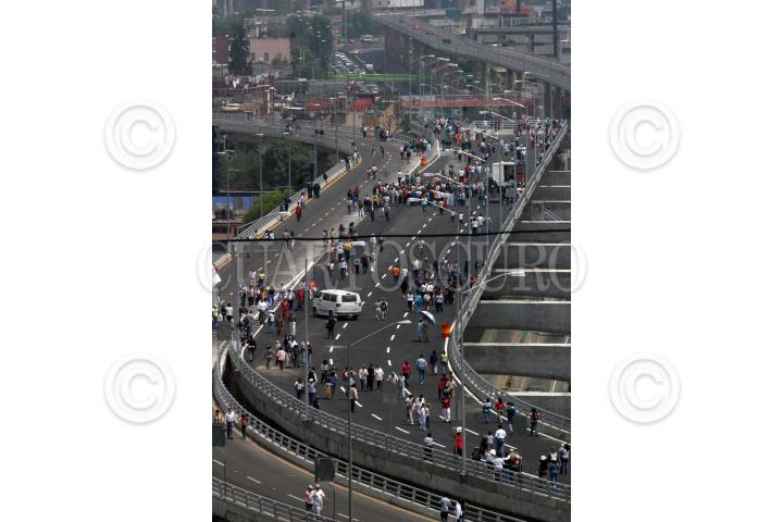 México, D.F., 22AGOSTO2004.- Simpatizantes de López Obrador, se manifestaron en contra de su desafuero durante la inauguración de los segundos pisos del Periférico en su tramo Benvenuto Cellini-Las Flores. FOTO: Moisés Pablo/CUARTOSCURO.COM