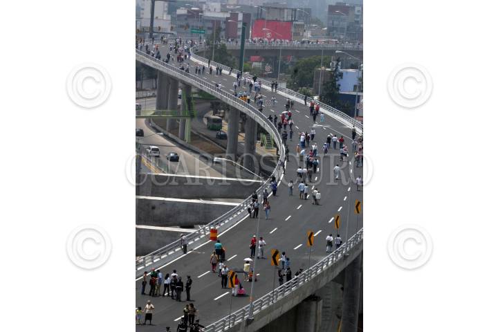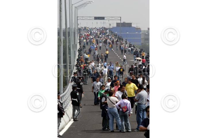 México, D.F., 22AGOSTO2004.- Las obras del segundo piso de Periférico, tramo Benvenuto Cellini-Las Flores, fueron inauguradas este domingo por el jefe de gobierno. Algunos capitalinos se dieron tiempo para caminar por las vialidades antes de ser abiertas a afluencia vehicular. FOTO: Moisés Pablo/CUARTOSCURO.COM