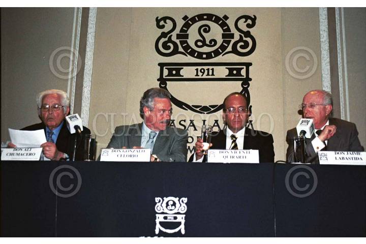 Alí Chumacero, Gonzalo Celorio, Vicente Quirarte y Jaime Labastida, academicos que fueron invitados al Homenaje a Xavier Villaurrutia que se llevo acabo en Casa Lamm, Centro de Cultura de la Ciudad de México. FOTO: Ricardo Hernández/CUARTOSCURO.COM