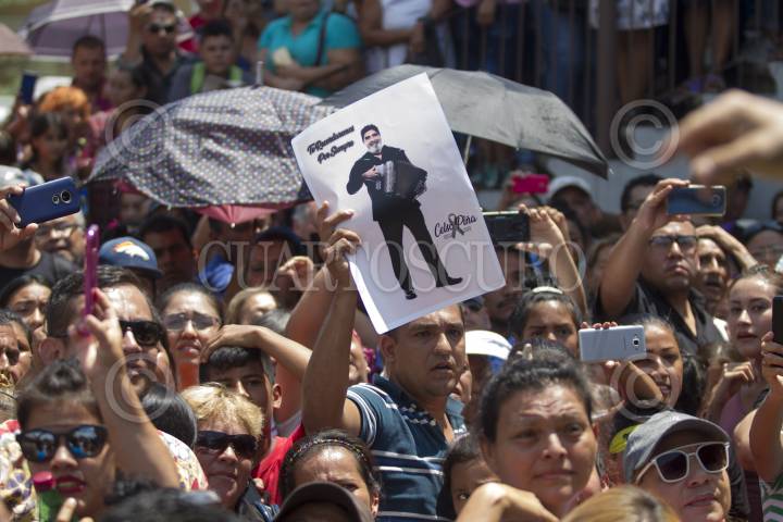 MONTERREY, NUEVO LEÓN, 24AGOSTO2019.- Miles de fanáticos del músico regiomontano Celso Piña, acudieron a la Basílica de Guadalupe, para darle el último adiós en una misa de cuerpo presente. El acordeonista falleció el miércoles 21 de agosto a consecuencia de un infarto mientras era atendido en el hospital San Vicente en el centro de la ciudad. FOTO: GABRIELA PÉREZ MONTIEL /CUARTOSCURO.COM