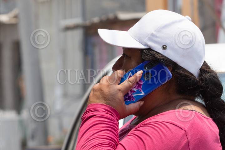 Una mujer habla desde su celular en la alcladía Iztapalapa