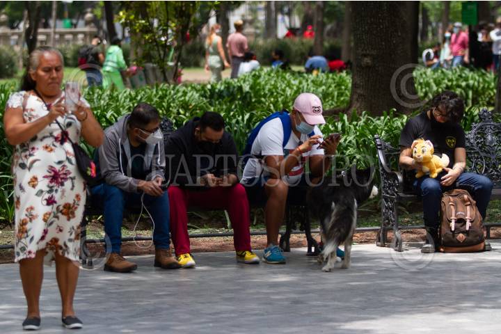 Capitalinos se reúnen en la Alameda Central para jugar con sus amigos videojuegos móviles a través de aplicaciones