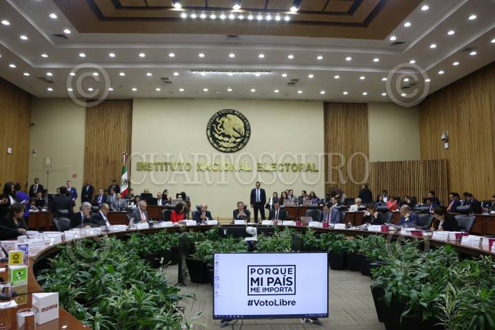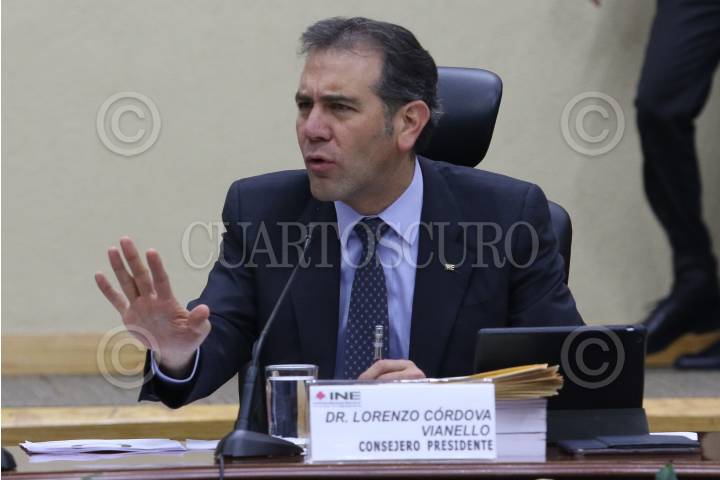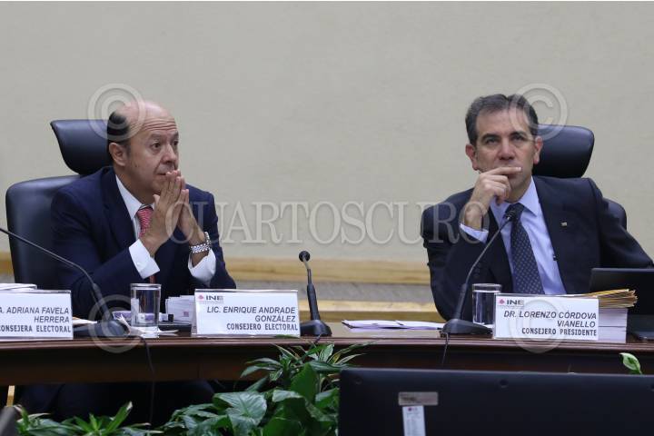 Enrique Andrade, consejero del INE, Lorenzo Córdova, consejero presidente del INE y Jacobo Molina, consejero del INE, encabezaron la Sesión Ordinaria del Consejo General del INE en la sede del Instituto.