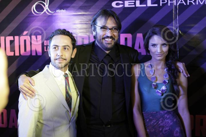 MÉXICO, D.F., 22ENERO2013.- Humberto Busto, Jesús Magaña y Ailínn Derbez acudieron a la premier de la película Abolición de la Propiedad en el Cinemex World Trade Center. FOTO: IVÁN STEPHENS /CUARTOSCURO.COM