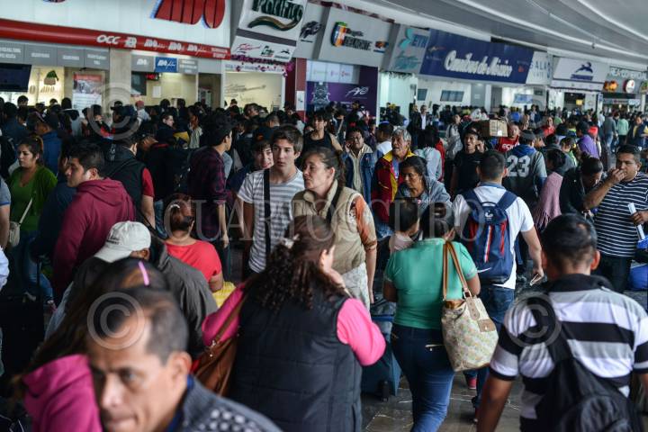 MÉXICO, D.F., 23DICIEMBRE2015.- Miles de personas sale de la ciudad y otros cientos llegan para pasar unos días de vacaciones y aprovechar las vacaciones de cembrinas. En la Central de Autobuses del Norte, se pueden observar gran cantidad de vacacionistas, siendo una de las de mayor afluencia en la ciudad. FOTO: ADOLFO VLADIMIR /CUARTOSCURO.COM