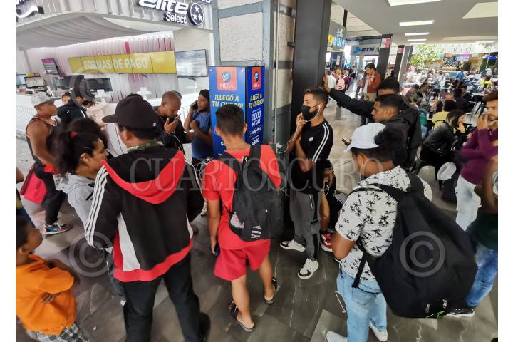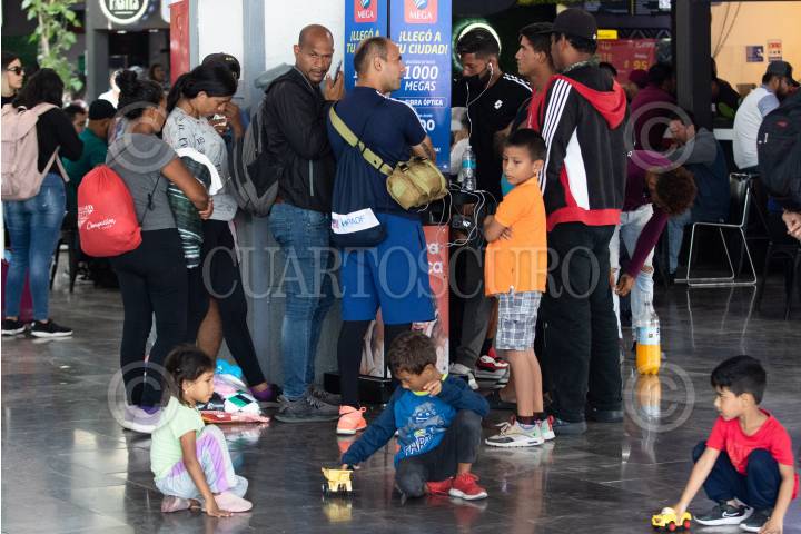 Migrantes venezolanos y haitianos se encuentran concentrados en la Central del Norte en espera de poder continuar su camino rumbo a Ciudad Juárez o Tamaulipas, en su búsqueda de llegar a Estados Unidos.
