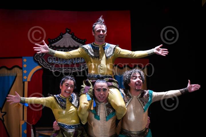 CIUDAD DE MÉXICO, 19JULIO2025.- Estreno del "Circo Olímpico, o el país de la maroma" de la compañía "La Bomba Teatro" puesta en escena con números acrobáticos y rutinas cómicas, que contará con una temporada del 19 de julio al 3 de agosto en el Centro Cultural del Bosque. FOTO: MARIO JASSO/CUARTOSCURO.COM