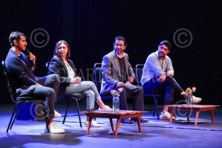 CIUDAD DE MÉXICO, 19AGOSTO2025.- Fernando Reyes, director de Idiotas Teatro; Melba Vidal y Gustavo Suárez, directores de los premios de la Asociación de Críticos y Periodistas Teatrales (ACPT), y Christian David, director de Idiotas Teatro, encabezaron la conferencia de prensa para anunciar las nominaciones de este año en las diferentes categorías. El evento se celebrará en octubre para condecorar a las y los actores en sus diferentes categorías. FOTO: GALO CAÑAS/CUARTOSCURO.COM