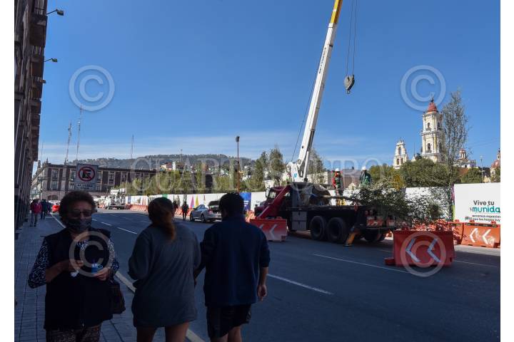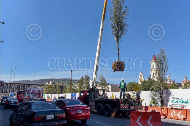 Colocan árboles en el Parque del Centro Histórico de Toluca, en una primera etapa son 22 árboles de cedro siempre verde, este proyecto será concluido en el 2021.