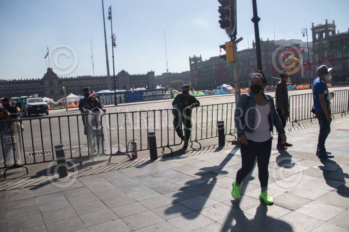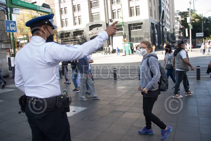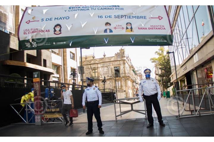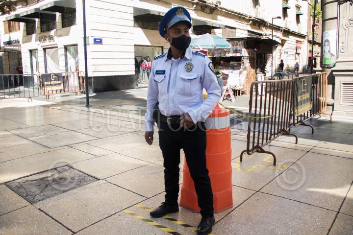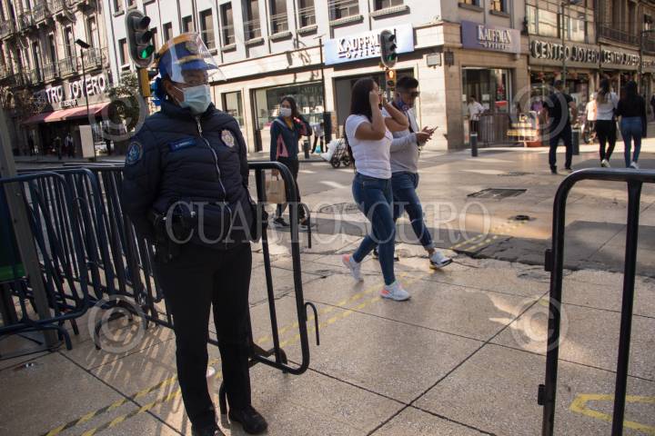 Policías de varias corporaciones impiden el acceso al primer cuador de la Capital, debido a que se lanzó la alerta por el alto índice de contagio de Covid 19