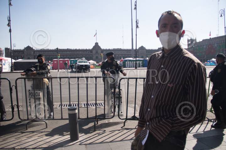 Un señor se cubre del los altos rayos del Sol en la Alameda Central en el el Centro Histórico