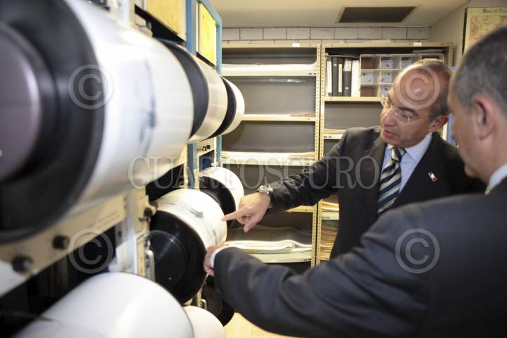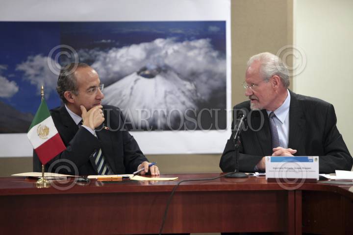 MÉXICO, D.F., 14JULIO2012.- Felipe Calderón Hinojosa, Presidente de México, visitó el Centro Nacional de Desastres. FOTO: ALFREDO GUERRERO /CUARTOSCURO.COM