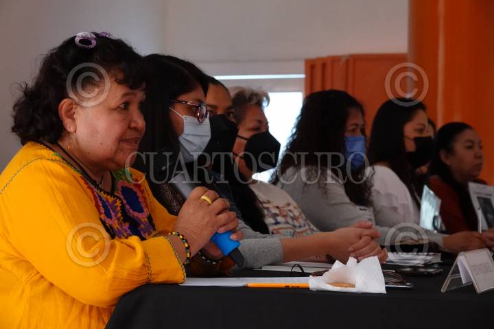 Edith Rosales; Italia Méndez; Claudia Hernández y Patricia Romero, víctimas de tortura sexual en el Caso Atenco, durante la conferencia a medios en el Centro Prodh