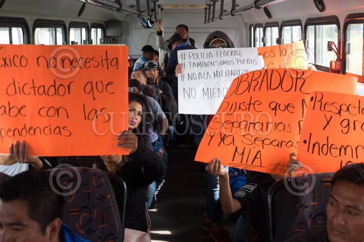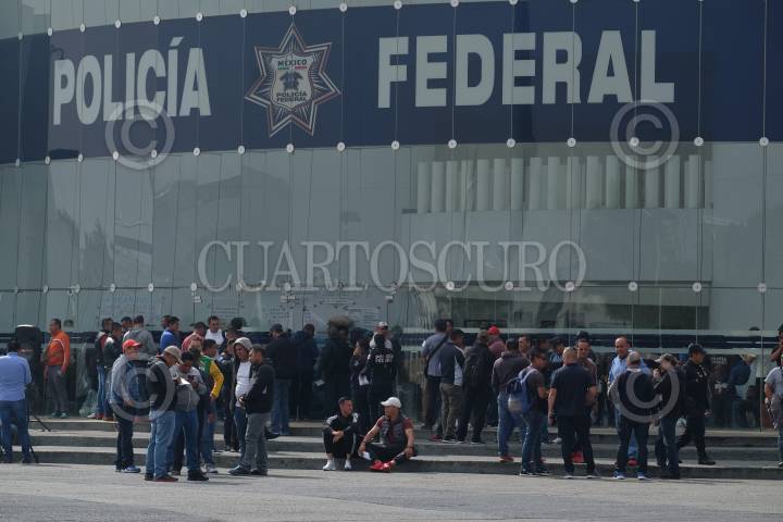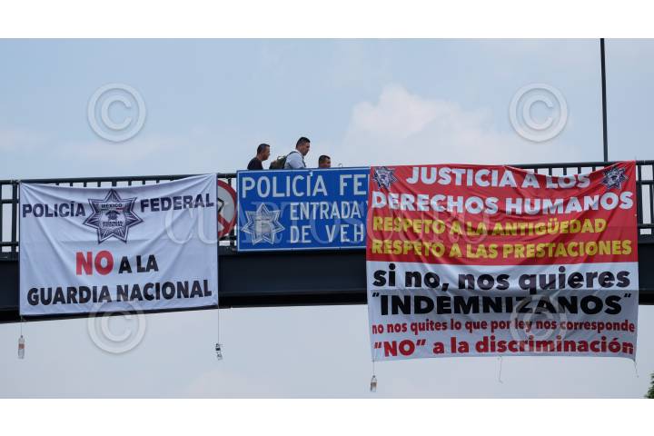 CIUDAD DE MÉXICO, 11JULIO2019.- Por noveno día, elementos de la Policía Federal (PF) que continúan en protesta al negarse la integración a la Guardia Nacional y a otras dependencias del gobierno, exigen el pago de su indemnización. Al no recibir respuestas el día de ayer en el Senado de la República, esta mañana salieron del Centro de Mando de la Policía Federal sin comunicar a los medios de comunicación el lugar a donde se manifestarán. FOTO: GRACIELA LÓPEZ /CUARTOSCURO.COM