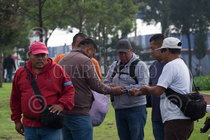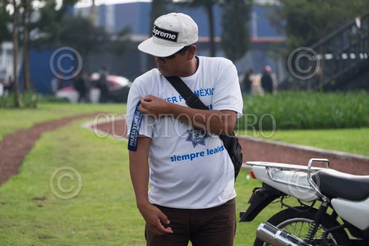 CIUDAD DE MÉXICO, 09JULIO2019.- Por séptimo día, elementos de la Policía Federal (PF) se mantienen en protesta para exigir por sus derechos para recibir su indemnización al negar su inclusión a la Guardia Nacional. Por la mañana, un grupo de policías realizaron un recorrido por los dormitorios para invitar a los compañeros a que se unan a las mesas de diálogo, mientras se realizaron mesas para informar a los policías que deseen incorporarse a otras dependencias del gobierno. Posteriormente, el policía Lover mostró un distintivo y se la entregó a sus compañeros para representar a los elementos que se encuentran en paro. FOTO: GRACIELA LÓPEZ /CUARTOSCURO.COM