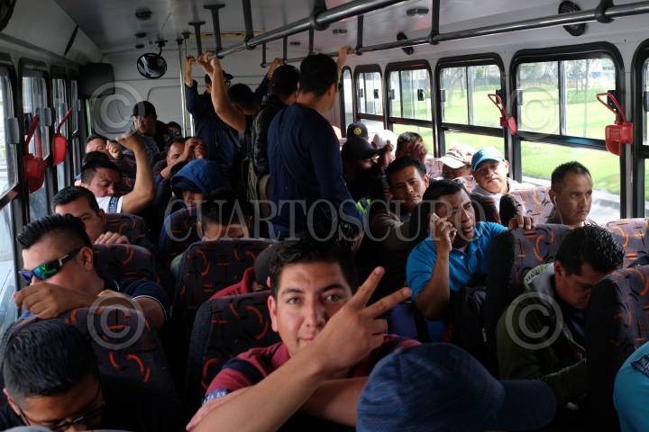 CIUDAD DE MÉXICO, 10JULIO2019.- Elementos de la Policía Federal (PF) se colocaron un distintivo de resistencia para representar que continúan en paro, manifestandose en avenida Periférico a la salida del Centro de Mando de la Policía Federal y se dirijieron en camiones hacia el Senado de la República para buscar una negociación por el pago de su indemnización. FOTO: GRACIELA LÓPEZ /CUARTOSCURO.COM