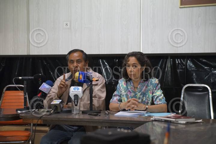 MEXICO, DF,29ABRIL2013.- En el restaurante "La Blanca" ubicado en el centro de la cuidad, el profesor Carlos Hurtado y la maestra Martha Obregón Lavín miembros del Colegio de Ciencias y Humanidades del CCH plantel Vallejo, organizaron una rueda de prensa a raíz de la toma de rectoría en donde expusieron sus puntos y respondieron a los medios preguntas relacionadas a diversos temas como el de sí es necesaria la intervención policial en el plantel. Los maestros están a favor de diálogo para la mejor solución del problema, y en contra del uso o forma de violencia en cualquiera de sus expresiones hacia los alumnos o hacia otros miembros de la universidad. FOTO: ALEJANDRO NEYRA / CUARTOSCURO.COM