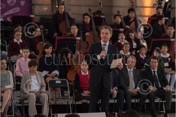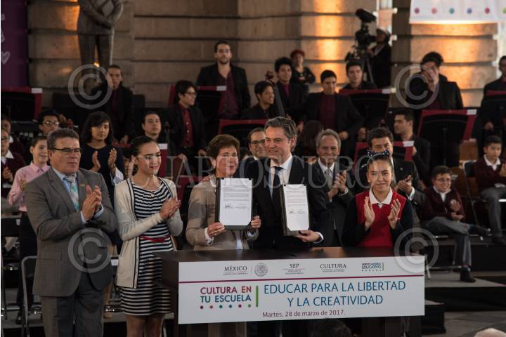 CIUDAD DE MÉXICO, 28MARZO2017.- Aurelio Nuño Mayer, Secretario de Educación Pública, y María Cristina García Cepeda, titular de la Secretaría de Cultura, encabezaron la presentación del programa Cultura en tu Escuela, con el propósito de fomentar el arte en los infantes del país. FOTO: TERCERO DÍAZ /CUARTOSCURO.COM