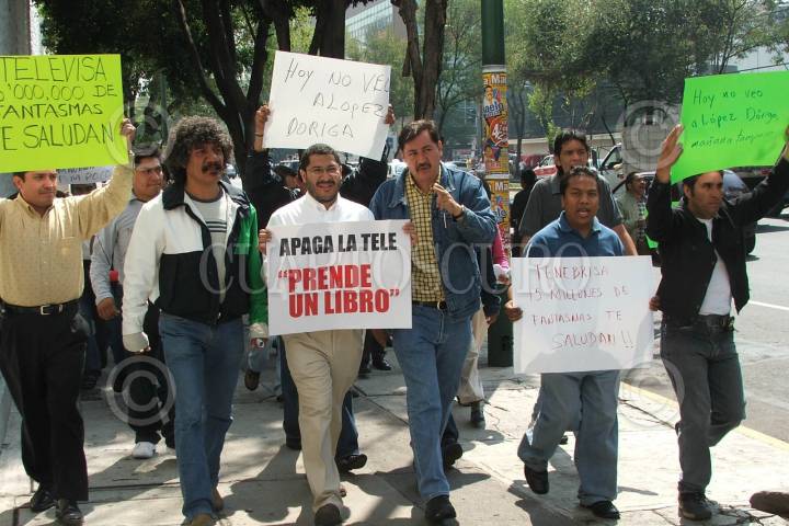 MÉXICO D.F. 21SEPTIEMBRE2006.- Decenas de perredistas encabezados por Marti Batres presidente del PRD D.F. acudieron a las instalaciones de Televisa Chapultepec, para exigir una equidad en la cobertura informativa, así como la realización de un boicot los dias viernes en contra del noticiero dirigido por Joaquin López Dóriga. FOTO: SAÚL LÓPEZ ESCORCIA/CUARTOSCURO.COM