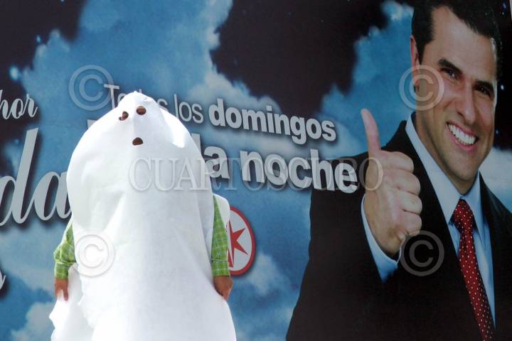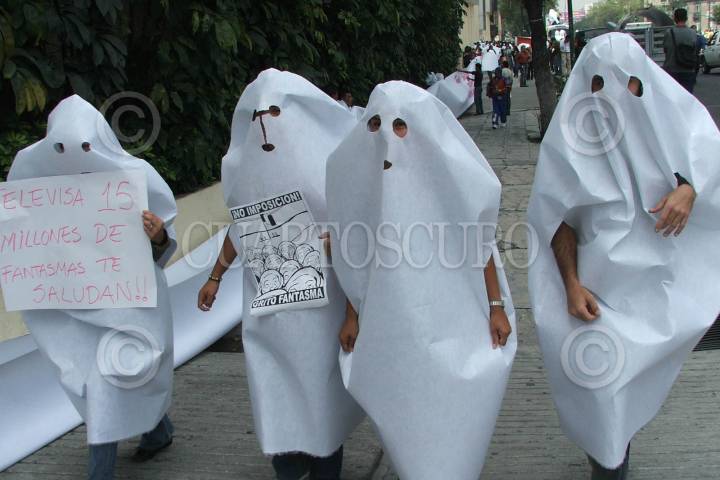 MÉXICO D.F. 21SEPTIEMBRE2006.- Vestidos de fantasmas simpatizantes perredistas cercaron las instalaciones de Televisa Chapultepec, para exigir una una equidad en la cobertura informativa, así como la realización de un boicot los dias viernes en contra del noticiero dirigido por Joaquin López Dóriga. FOTO: SAÚL LÓPEZ ESCORCIA/CUARTOSCURO.COM