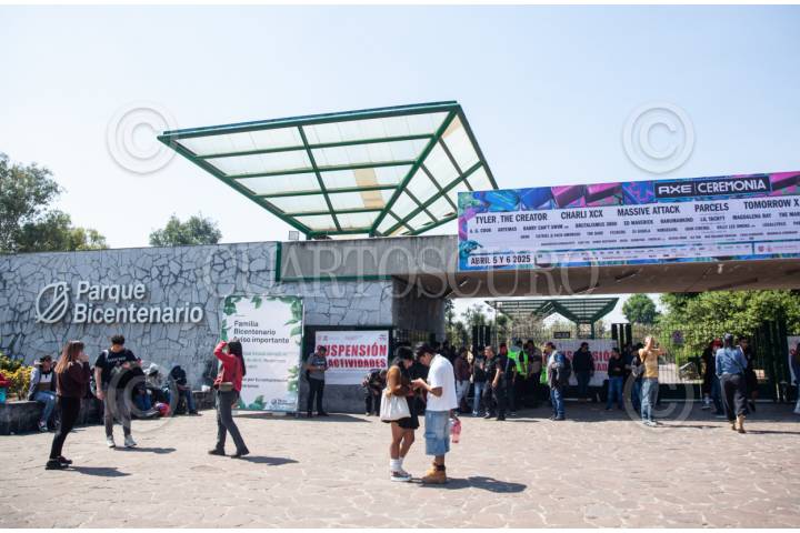 CIUDAD DE MÉXICO, 06ABRIL2024.- Al rededor de las 2:30 am trabajadores de la alcaldía Miguel Hidalgo clausuraron las puertas principales del Parque Bicentenario y las actividades del festival Axe Ceremonia luego de que colapsara una estructura metálica en el recinto dejando dos muertos. FOTO: ANDREA MURCIA /CUARTOSCURO.COM