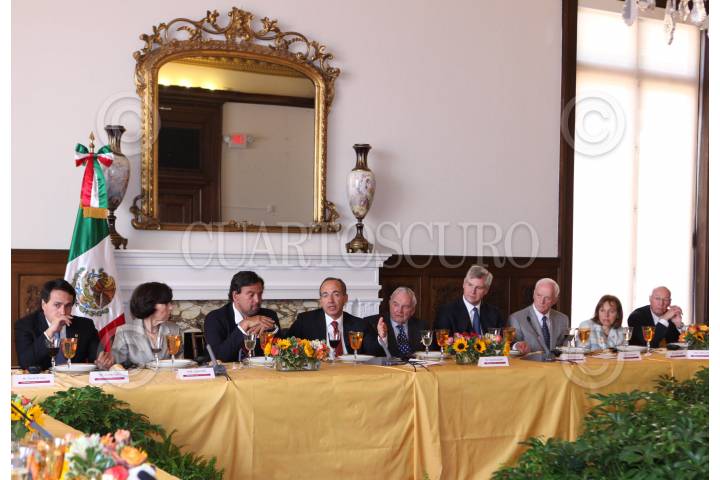 WASHINGTON, D.C., ESTADOS UNIDOS, 20MAYO2010.- Felipe Calderón Hinojosa, presidente de México, durante el almuerzo con formadores de opinión y personalidades del sector público y privado que tuvo lugar en el Instituto Cultural Mexicano. FOTO: ALFREDO GUERRERO/CUARTOSCURO.COM