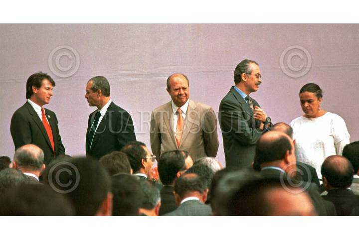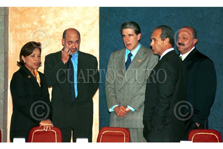Pedro Cerisola, secretario de Comunicaciones y Transportes y el presidente Vicente Fox, durante la Declaratoria de Conectividad del Sistema Nacional e-México en la residencia oficial de los Pinos. FOTO: Oswaldo Ramírez/CUARTOSCURO.COM