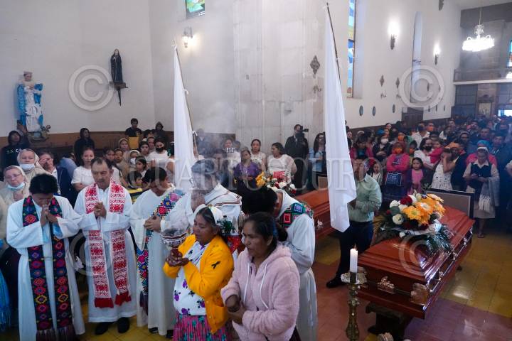 Jesuitas, familias de comunidades tarahumaras y autoridades asistieron a darle el último adiós a Joaquín César Mora Salazar, de 80 años, y Javier Campos Morales, de 79, sacerdotes jesuitas quienes fueron asesinados dentro del templo de Cerocahui en el municipio de Urique. Los cuerpos descansarán en el patio de este templo.