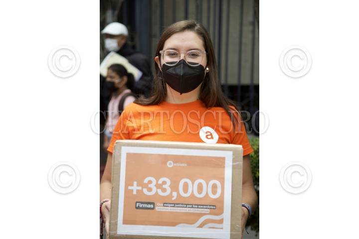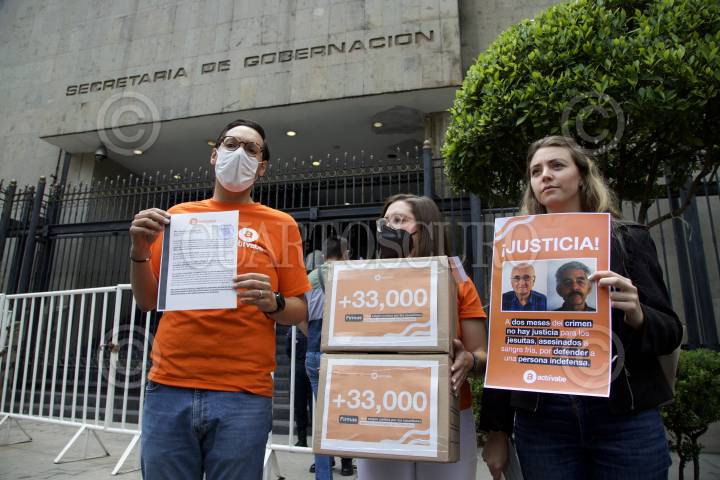 Integrantes de la Plataforma Actívate acudieron a la Secretaría de Gobernación para entrega 33 mil firmas de apoyo para exigir justicia en torno al asesinato de dos sacerdores jesuitas y un guía de turistas en la comunidad de Cerocahui, Chihuahua.
