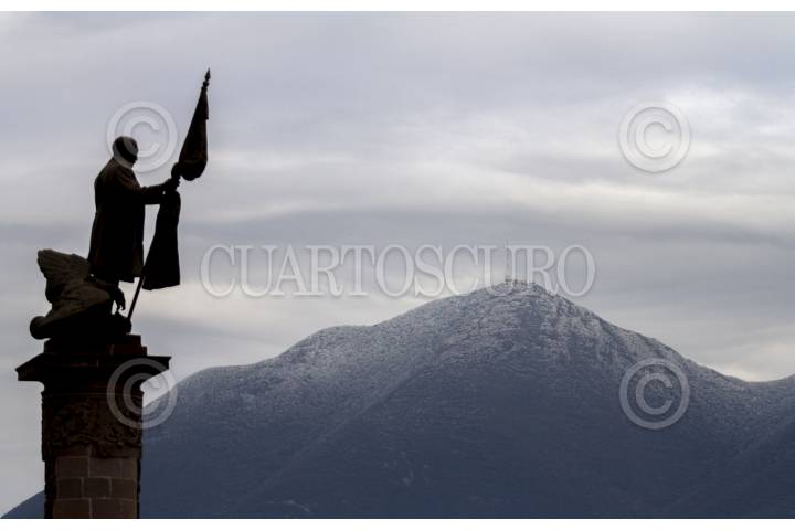 MONTERREY, NUEVO LEÓN, 29ENERO2016.- La mañana del miercoles 27 de enero de 2016 la cima del cerro de la Silla se tiñó de blanco, la masa de aire polar del frente frío No. 34 provocó nieve y bajas temperaturas en su paso en los estados de Durango, Nuevo León y Zacatecas. FOTO: ALFONSO ALARCÓN /ARCHIVO/CUARTOSCURO.COM
