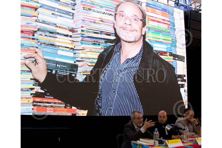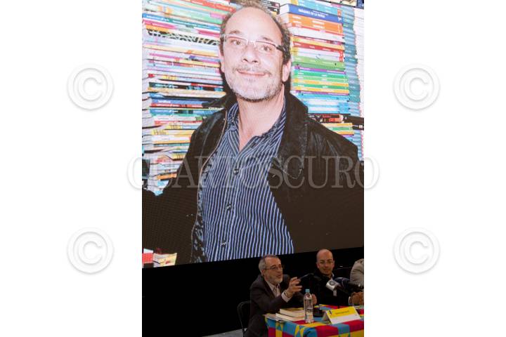 GUANAJUATO, GUANAJUATO, 070CTUBRE.- Onofre Sánchez Menchero Director del Museo Iconográfico del Quijote. y Jorge Volpi, Director del Festival Cervantino, ofrecieron una platica sobre el escritor. Ignacio Castillo que falleció el pasado 20 de abril, como parte de las actividades del Festival Internacional Cervantino. FOTO: ANTONIO CRUZ /CUARTOSCURO.COM