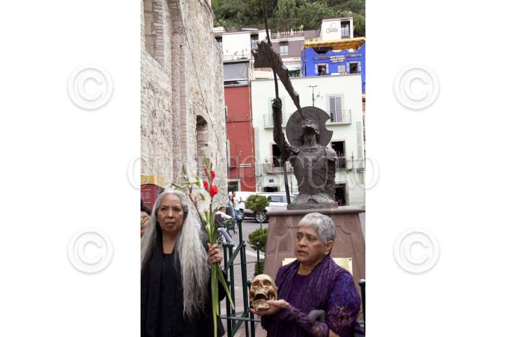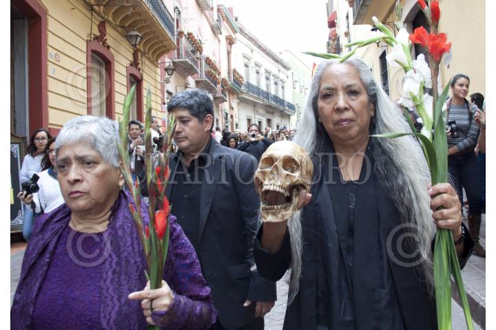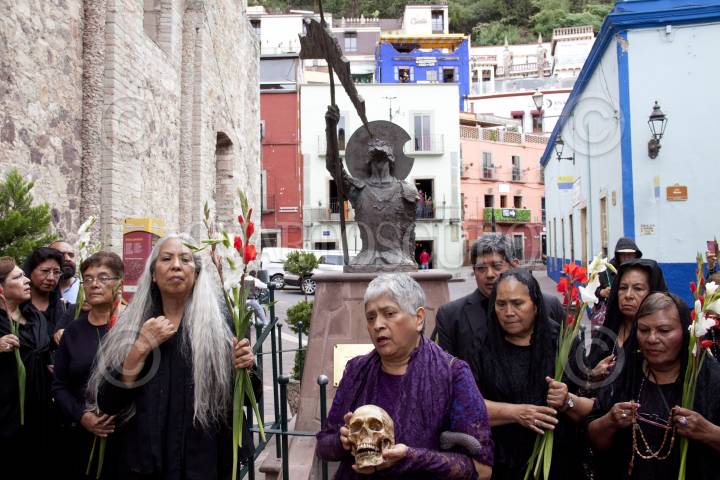 GUANAJUATO, GUANAJUATO, 080CTUBRE2016.- Actores amateurs realizaron por las calles de esta Ciudad, la Procesión Solemne Hacia la Tumba del Quijote donde le dejaron flores y terminar con unas misa en el marco de la edición. XLIV del Festival Internacional Cervantino. FOTO: ANTONIO CRUZ /CUARTOSCURO.COM