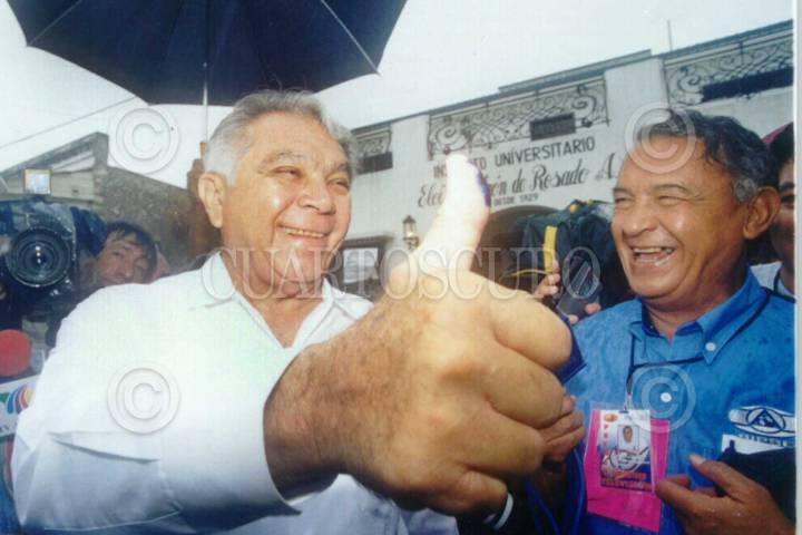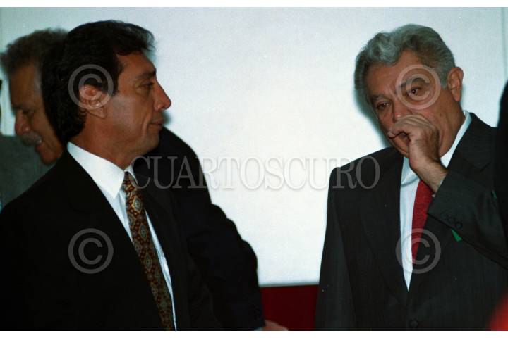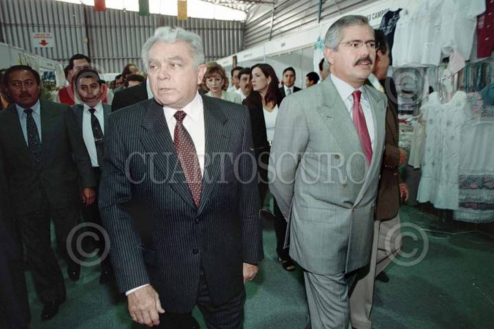 México 18AGOSTO 2004.- El ex gobernador de Yucatán, Víctor Cervera Pacheco, falleció la mañana de hoy víctima de un infarto, a los 68 años de edad. En imagen de archivo del 28 de agosto de 1995, Mario Villanueva, gobernador de Quintana Roo acompaña a Cervera Pacheco. FOTO: VICTORIA VALTIERRA/CUARTOSCURO.COM